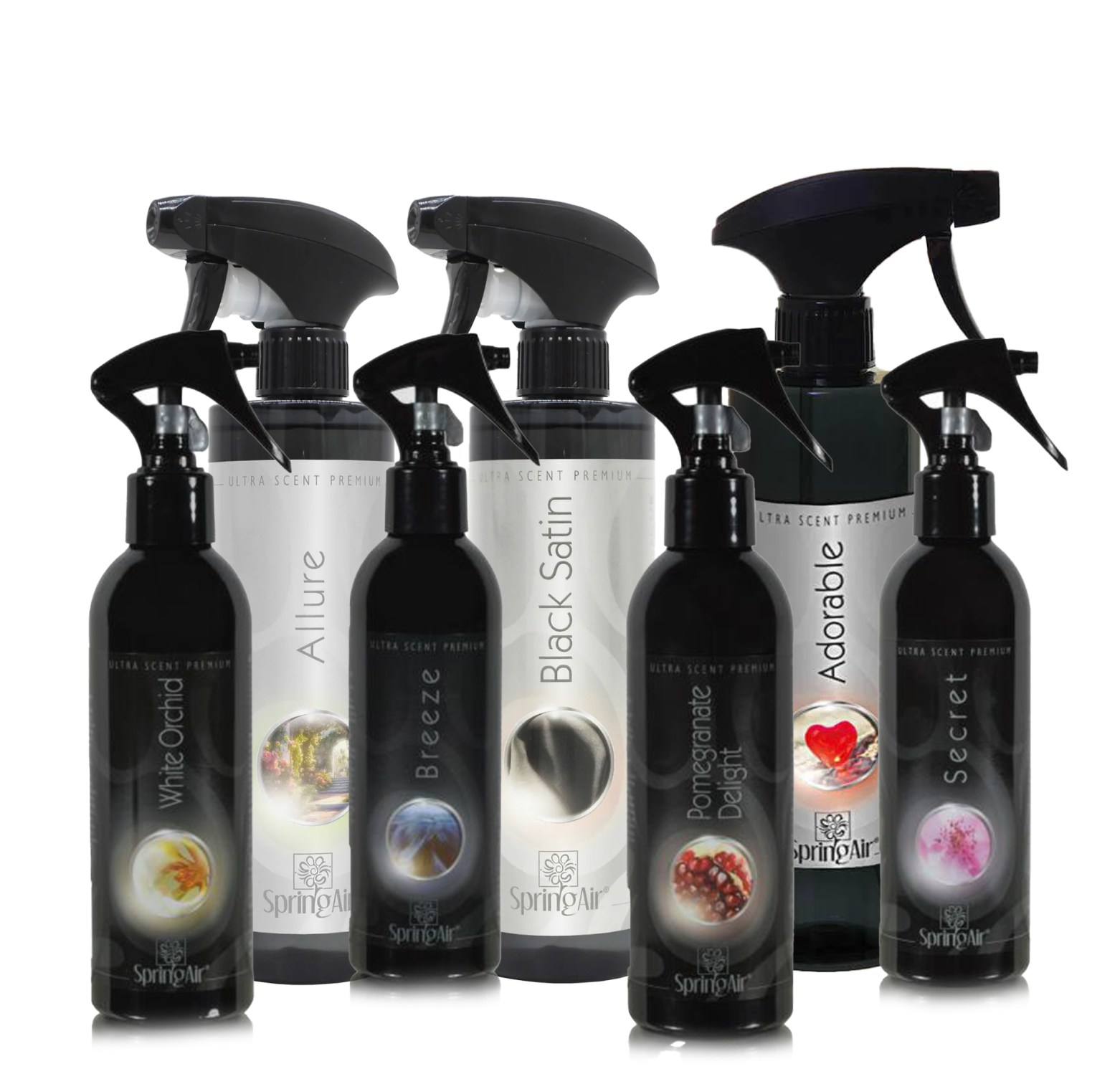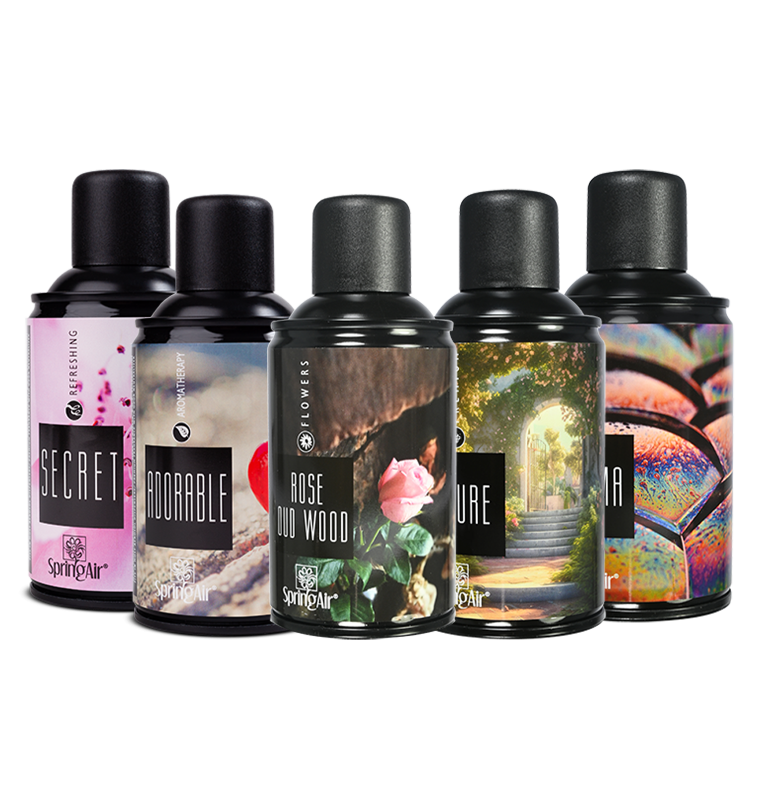 روائح SpringAir تتميز بتنوعها وأناقتها، حيث تضم مجموعة واسعة من العطور مثل Adorable، Secret، Hug Me، Scandle، Rose Oud Wood، Elegant، Whispers، Addiction، Black Satin، Mystique، Allure، Enigma، Utopia، Lavender، Serenity، Relax، وCashmere. هذه المجموعة ليست سوى جزء من أكثر من 100 رائحة فريدة تقدمها الشركة المصنعة، مما يجعلها واحدة من أغنى تشكيلات العطور في السوق.